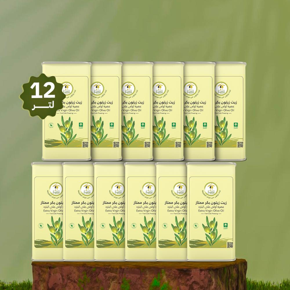 • 12 عبوة (1 لتر لكل عبوة) من زيت الزيتون البكر الممتاز عصرة أولى على البارد.